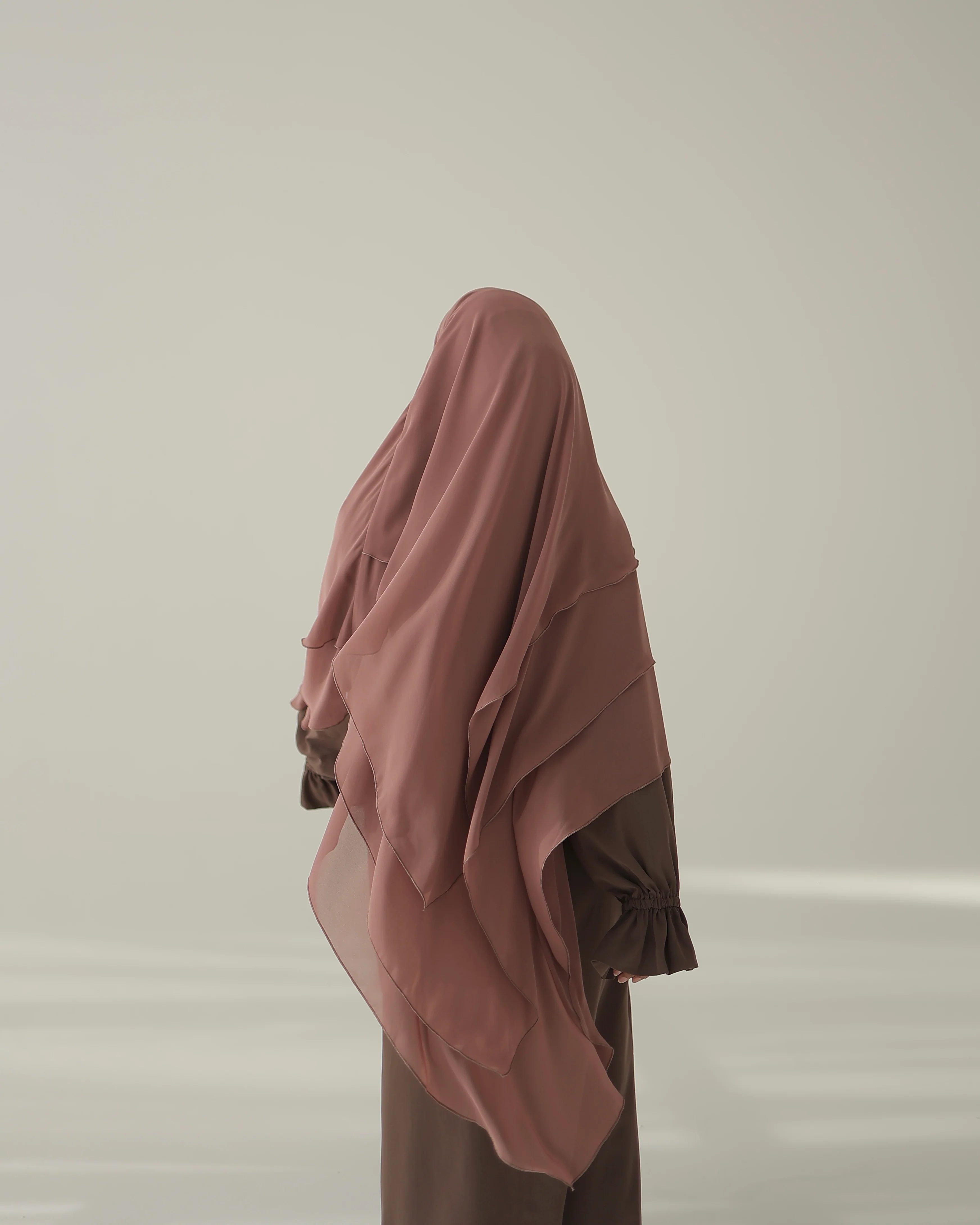 Unser dreilagiger Chiffon Khimar verkörpert schlichte Eleganz. Hergestellt aus hochwertigem Chiffon und vernĂ€ht mit gröĂter PrĂ€zision, bietet er eine luxuriöse FĂŒlle und einen schönen Fall. Die groĂzĂŒgige LĂ€nge und der weiche Griff sorgen fĂŒr maximalen Tragekomfort bei optimaler Bedeckung. Mit seinem romantischen Design ist dieser Khimar perfekt fĂŒr jeden Anlass und verleiht deinem Gesicht die schönste Umrandung! Probierâs unbedingt aus - wir LIEBEN es!Â