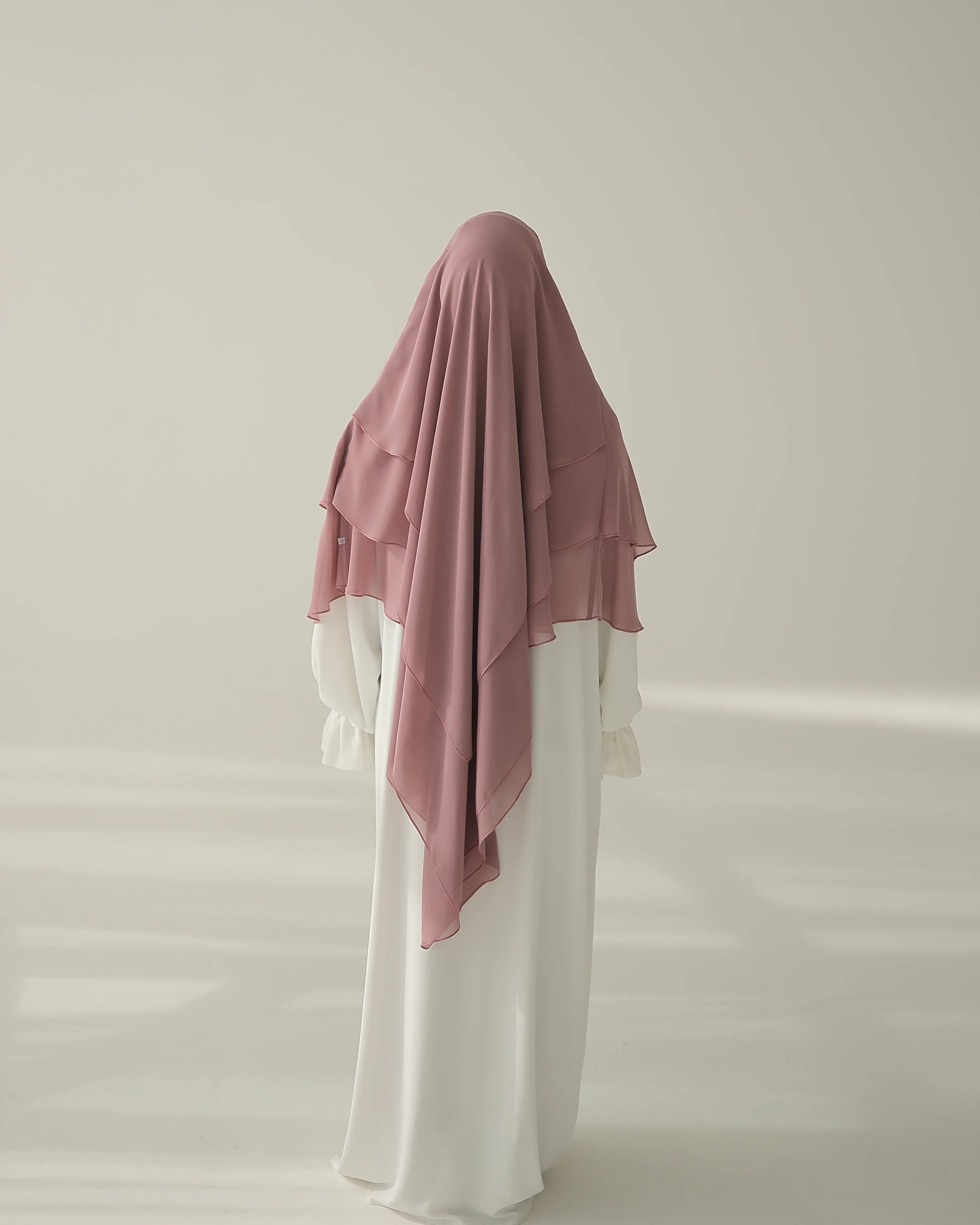Unser dreilagiger Chiffon Khimar verkörpert schlichte Eleganz. Hergestellt aus hochwertigem Chiffon und vernĂ€ht mit gröĂter PrĂ€zision, bietet er eine luxuriöse FĂŒlle und einen schönen Fall. Die groĂzĂŒgige LĂ€nge und der weiche Griff sorgen fĂŒr maximalen Tragekomfort bei optimaler Bedeckung. Mit seinem romantischen Design ist dieser Khimar perfekt fĂŒr jeden Anlass und verleiht deinem Gesicht die schönste Umrandung! Probierâs unbedingt aus - wir LIEBEN es! Â