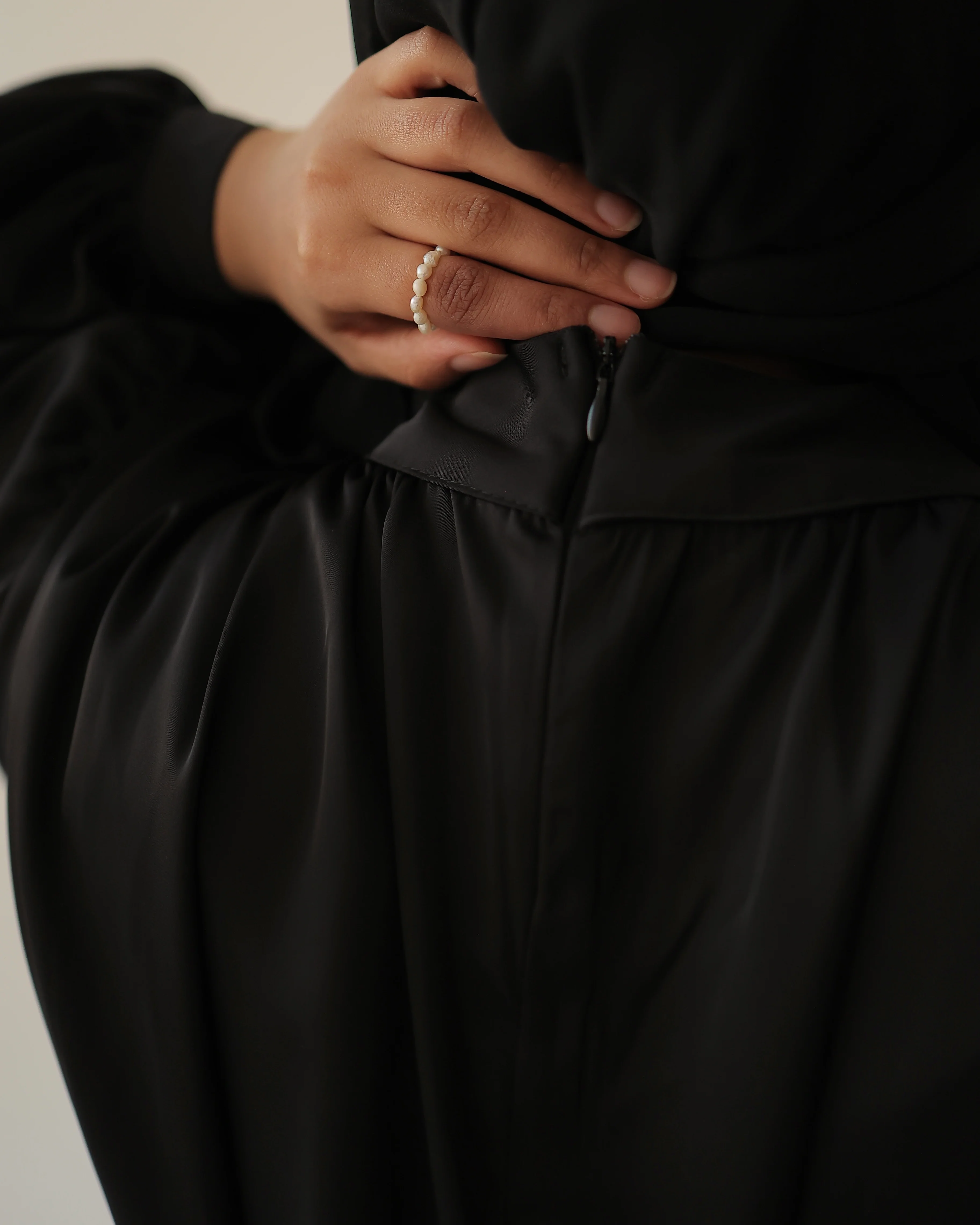 Entdecke unsere elegante Satin Abaya - das perfekte Kleidungsstück für Eid & besondere Anlässe! Mit einer Länge von 143cm bietet sie eine stilvolle & schmale Silhouette und maximale Bedeckung. Hergestellt aus hochwertigem Satin, garantiert sie absolute Blickdichte und ein luxuriöses Tragegefühl. Diese Abaya vereint zeitlose Eleganz mit modernem Stil und ist ein vielseitiger Liebling für deine Garderobe. Egal ob für festliche Anlässe oder den täglichen stilvollen Auftritt - dieses Kleid verleiht dir immer eine besondere Ausstrahlung. Bereichere deine Kollektion mit den schönsten Farben: OCEAN, NIGHT und PEARL.